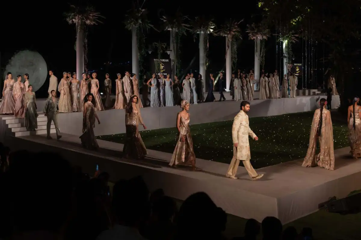 India’s fashion capital, Mumbai, witnessed a truly enchanting spectacle with Tarun Tahiliani’s “Dreamscape” collection. Presented on a majestic floating runway against the breathtaking Mumbai coastline, Tahiliani’s mastery of drape and luxurious fusion wear was on full display. Adding to the glamour were not one, but two showstoppers: Tiger Shroff and Manushi Chhillar. Their presence amplified the collection’s themes of fantasy, red-carpet glamour, and timeless charm. This high-profile showcase in a unique setting cemented the tour’s reputation for delivering extraordinary fashion experiences.